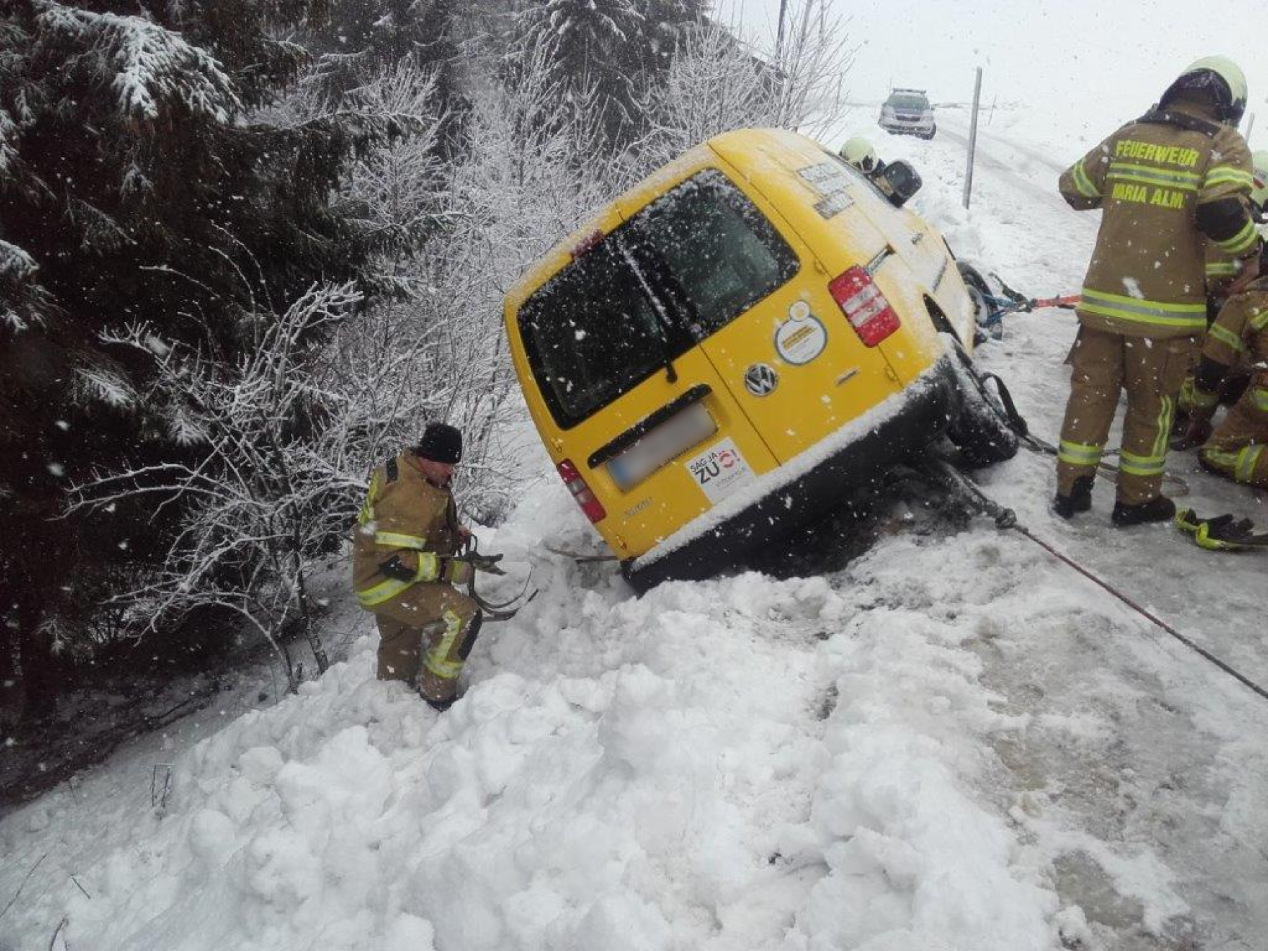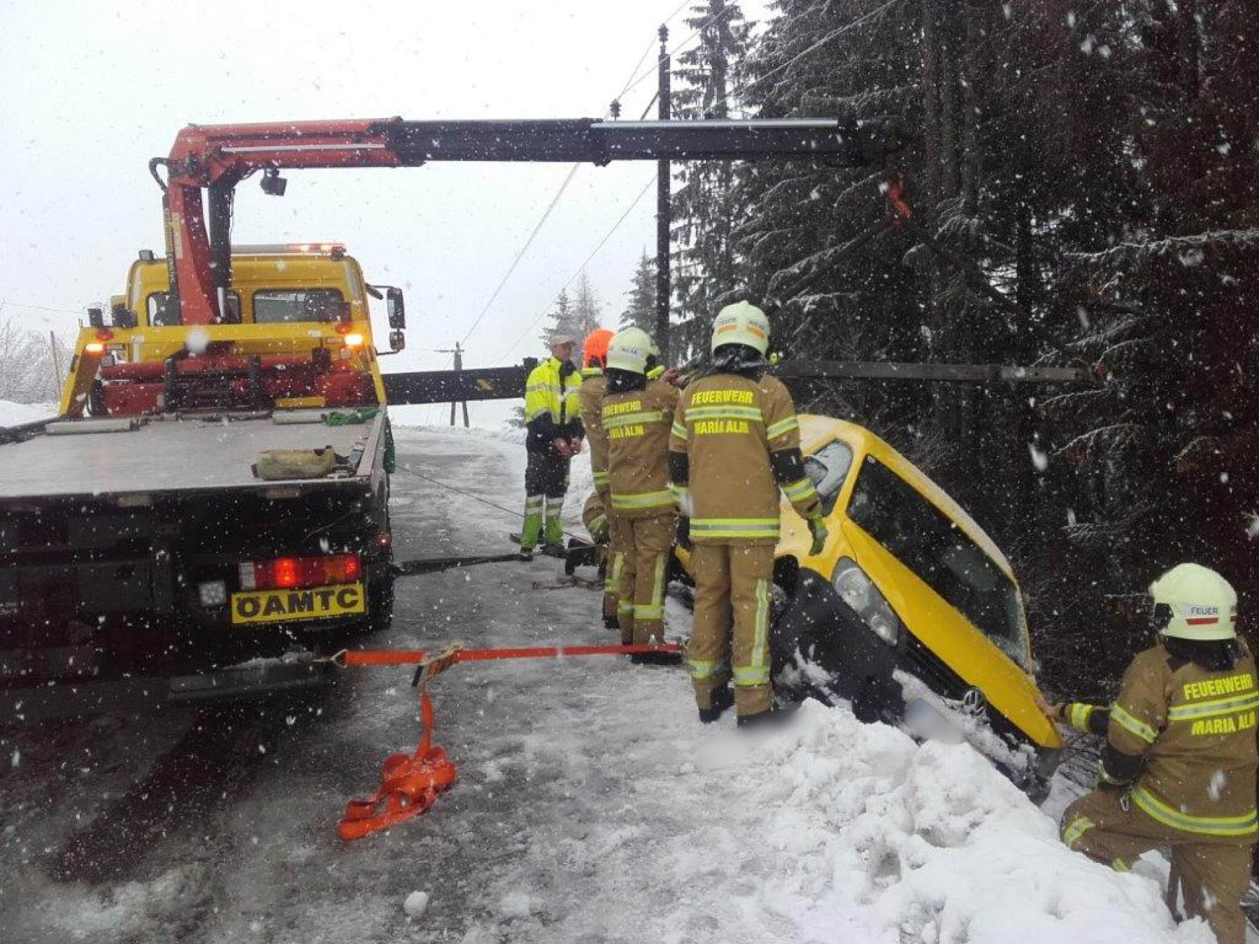 Am 24. Dezember wurde die Feuerwehr Maria Alm Hauptwache zu einer Fahrzeugbergung im Ortsteil Bachwinkl in Hintermoos alarmiert. Zwei Fahrzeuge waren nur ca. 50 Meter entfernt bei Schneefahrbahn ins Rutschen geraten, wodurch ein Fahrzeug auf eine Gartenmauer prallte und der andere PKW in einer steilen Böschung hängen blieb. Durch die Feuerwehr wurden die Fahrzeuge gesichert und der Abschleppdienst bei der Bergung der KFZ unterstützt.