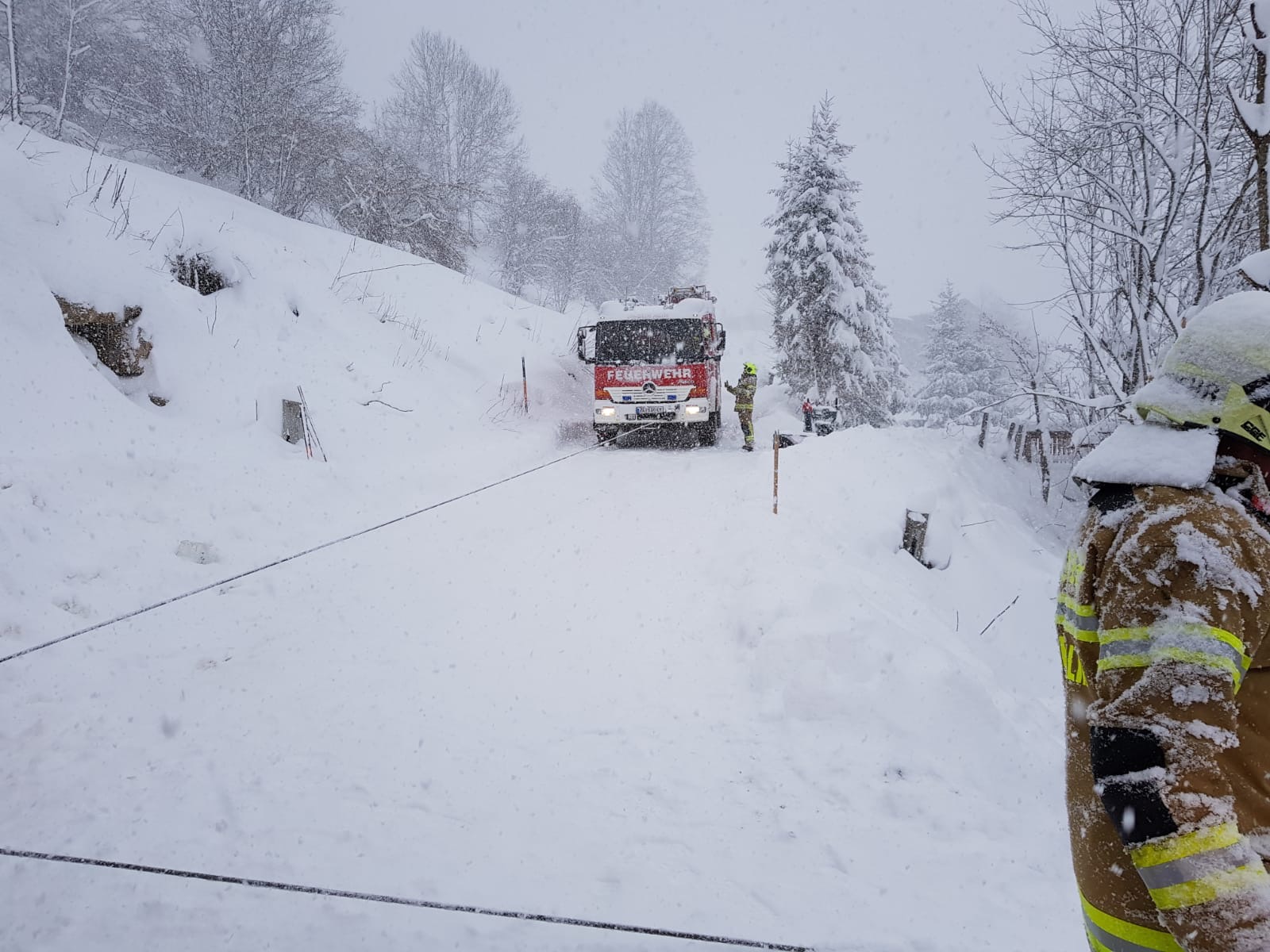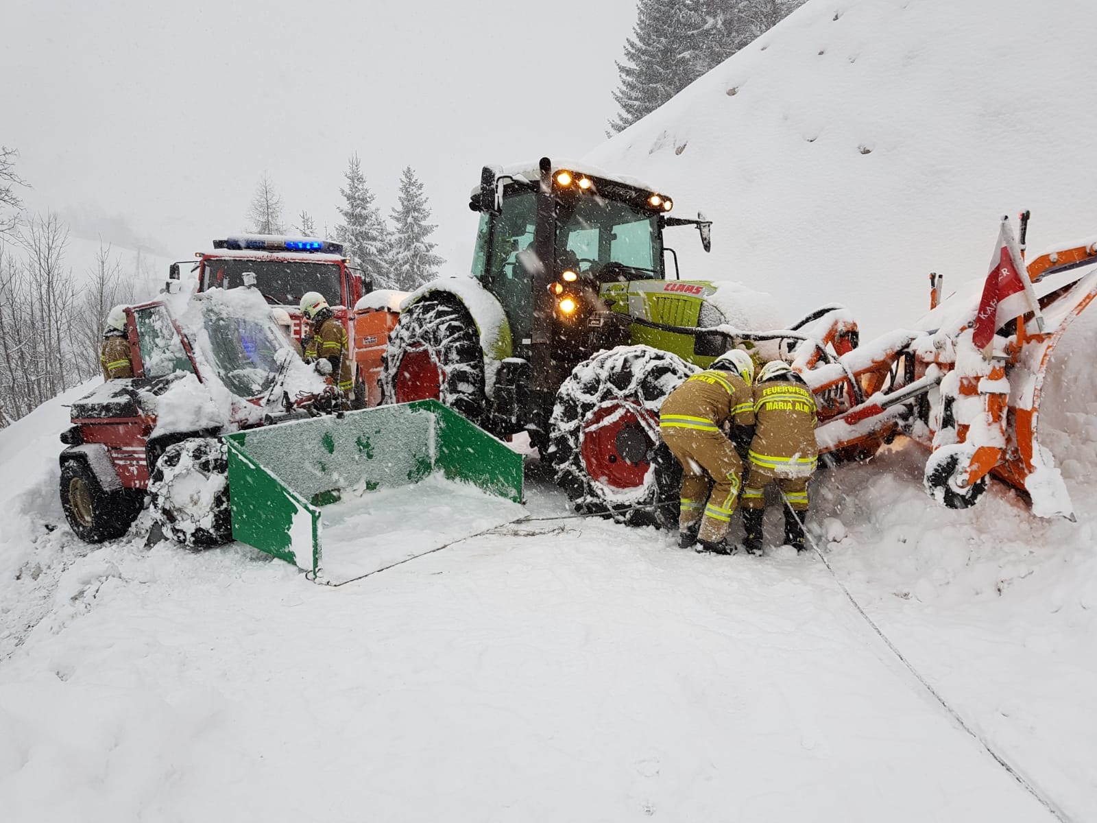 Am Mittwoch, den 5. Februar 2020 wurde die Feuerwehr Maria Alm telefonisch über den Absturz eines Mähtracks im Bereich Obersonnberg informiert. Mithilfe der Einbauseilwinde des Tanklöschfahrzeuges konnte das verunglückte Fahrzeug zurück auf die Straße gezogen werden.