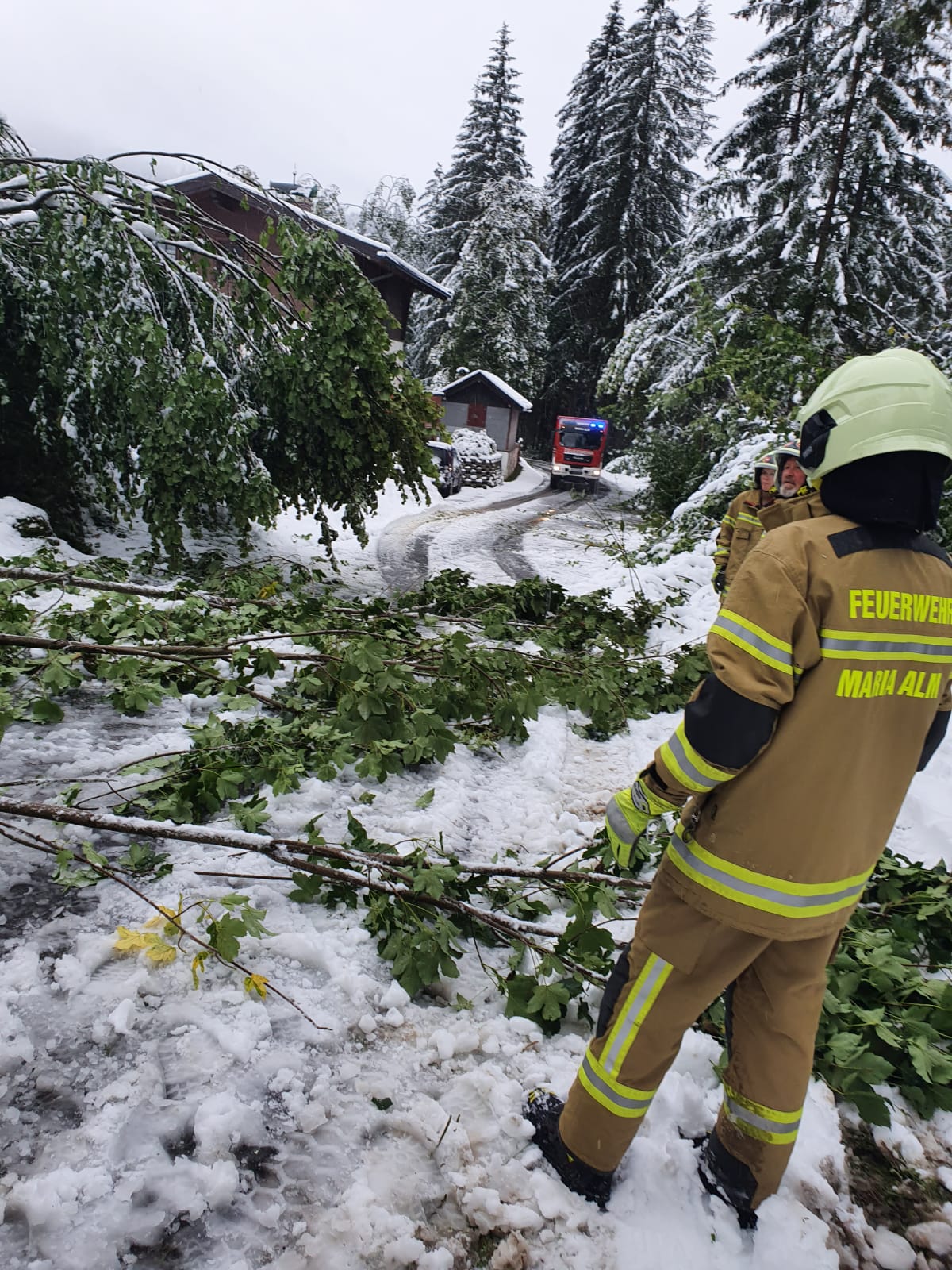 Am Morgen des 26. September wurde die Feuerwehr nach den Schneefällen vom Vortag zu umgestürzten Bäumen im Krallerwinkl alarmiert. Mehrere Bäume gaben unter der Last des schweren Schnees nach und stürzten um.