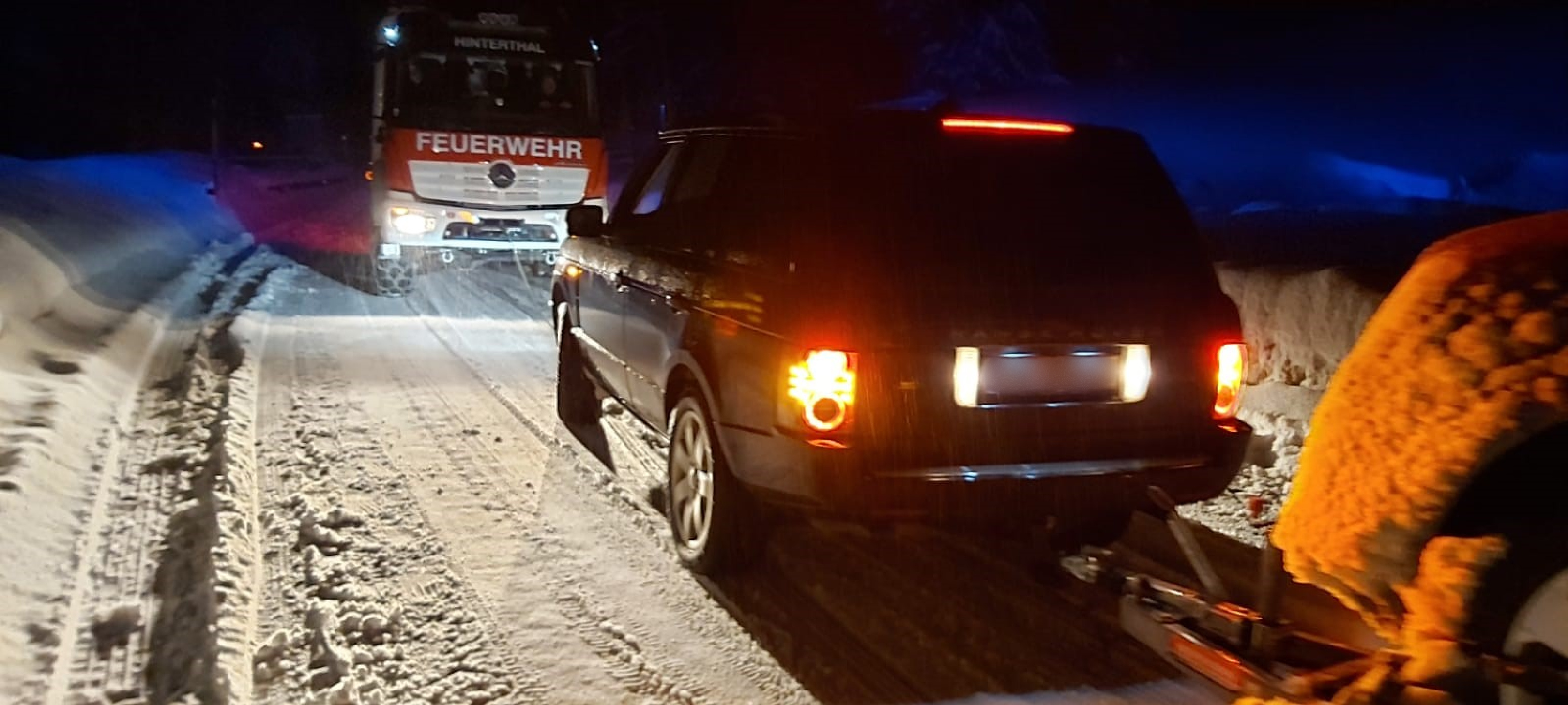 Am Abend des 28. Jänner wurde der Löschzug Hinterthal zu einer Fahrzeugbergung eines PKW samt Anhänger am Filzensattel alarmiert. Mit dem Tanklöschfahrzeug konnte der PKW auf schneeglatter Fahrbahn geborgen werden.