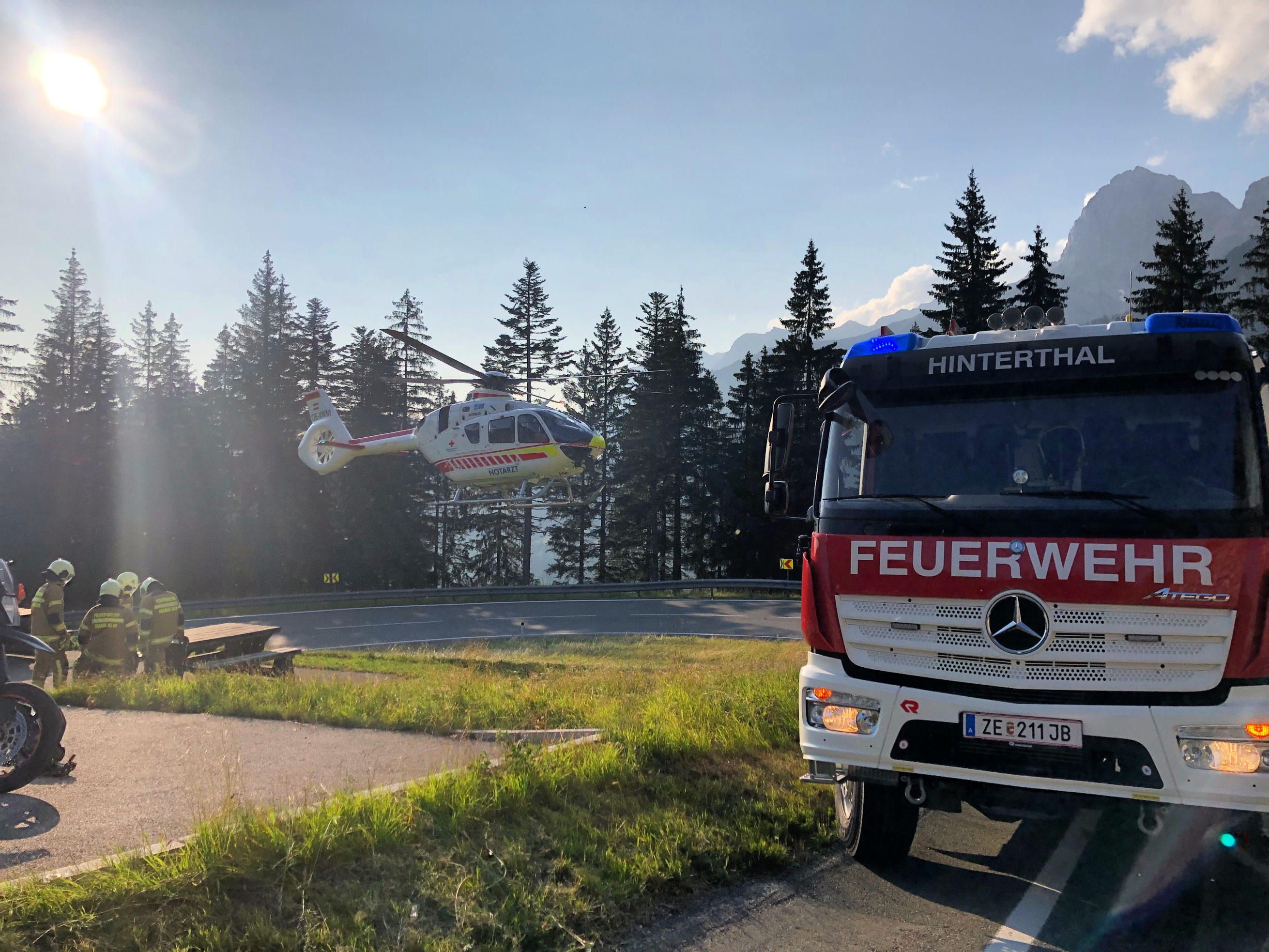 Die Feuerwehr Maria Alm wurde zu einem Verkehrsunfall mit Motorrad am Filzensattel alarmiert. Ein Motorradlenker war in einer Kehre zu Sturz gekommen, der Notarzthubschrauber befand sich bereits im Anflug. Durch die Feuerwehr wurde die Straße gesperrt, das Rote Kreuz beim Abtransport des Patienten unterstützt und Betriebsmittel gebunden.