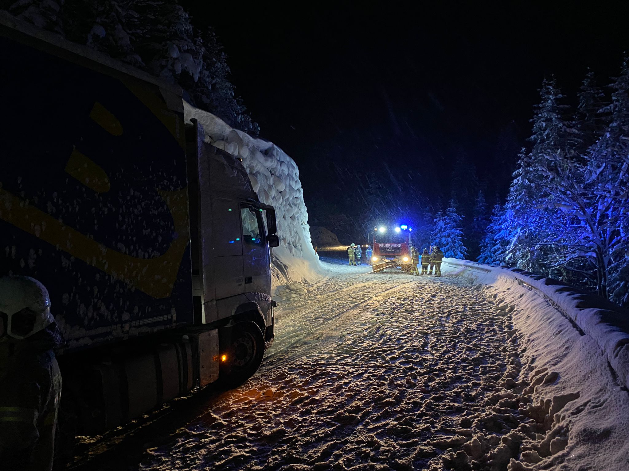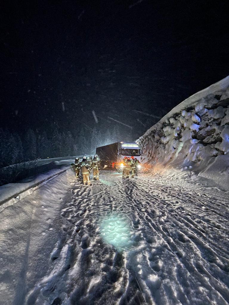 Die Feuerwehr Maria Alm wurde am 9. Dezember 2021 zu einer Fahrzeugbergung am Filzensattel alarmiert. Bei Kilometer 23,00 war ein rund 20 Tonnen schwerer Sattelzug auf schneebedeckter Fahrbahn hängen geblieben. Der LKW blockierte beide Fahrspuren, woraufhin die FF Dienten zur Unterstützung alarmiert wurde. Mit der Seilwinde des RLF Dienten konnte der LKW bis zur Kehre zurück abgelassen und dort sicher abgestellt werden.