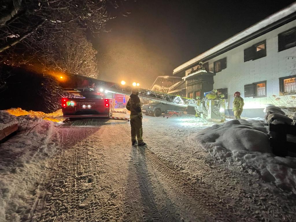 Zur Unterstützung des Roten Kreuzes wurde die Feuerwehr Maria Alm alarmiert. Ein Patient musste liegend über den Balkon abtransportiert werden, da das Stiegenhaus zu eng war. Mit Unterstützung der Drehleiter aus Saalfelden wurde die Person sicher aus dem 1. Stock gerettet.