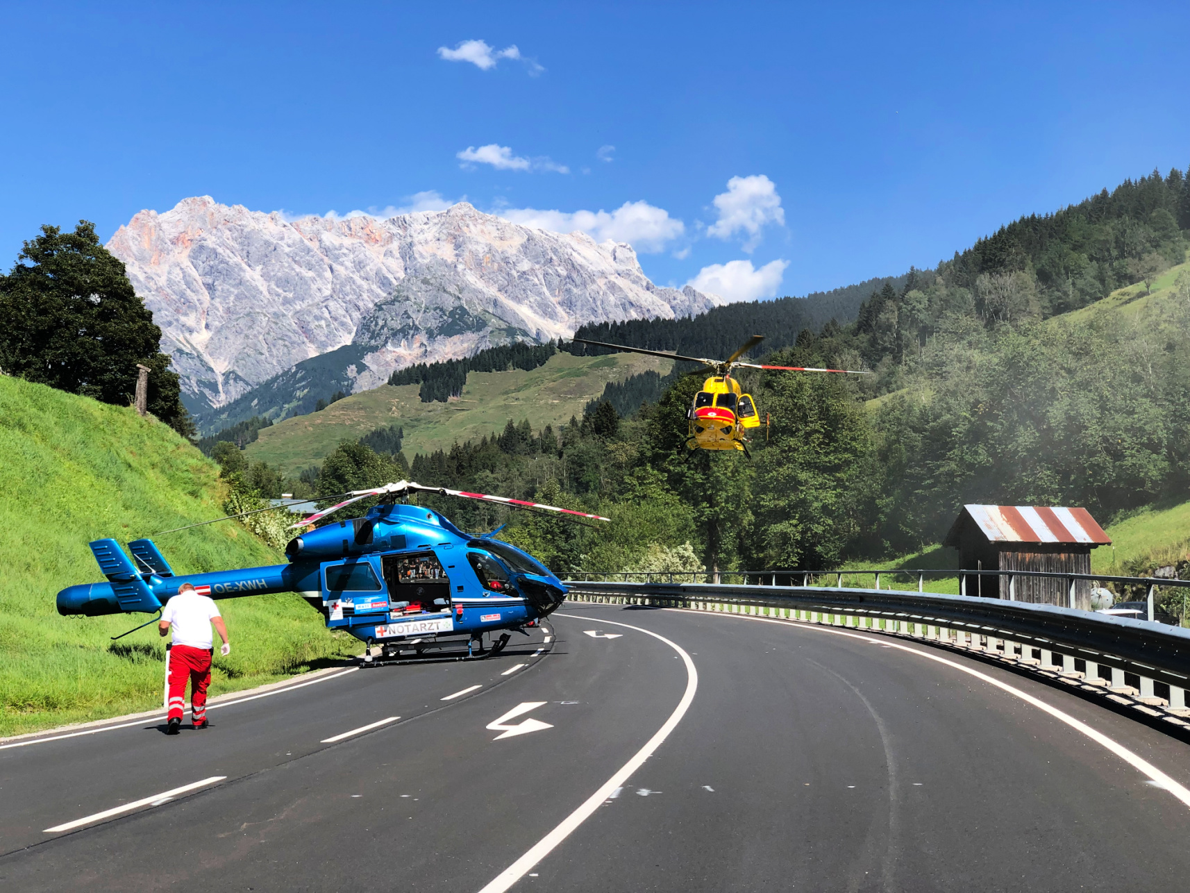 Anwesend: Rotes Kreuz, 2 Notarzthubschrauber, Arzt, Polizei