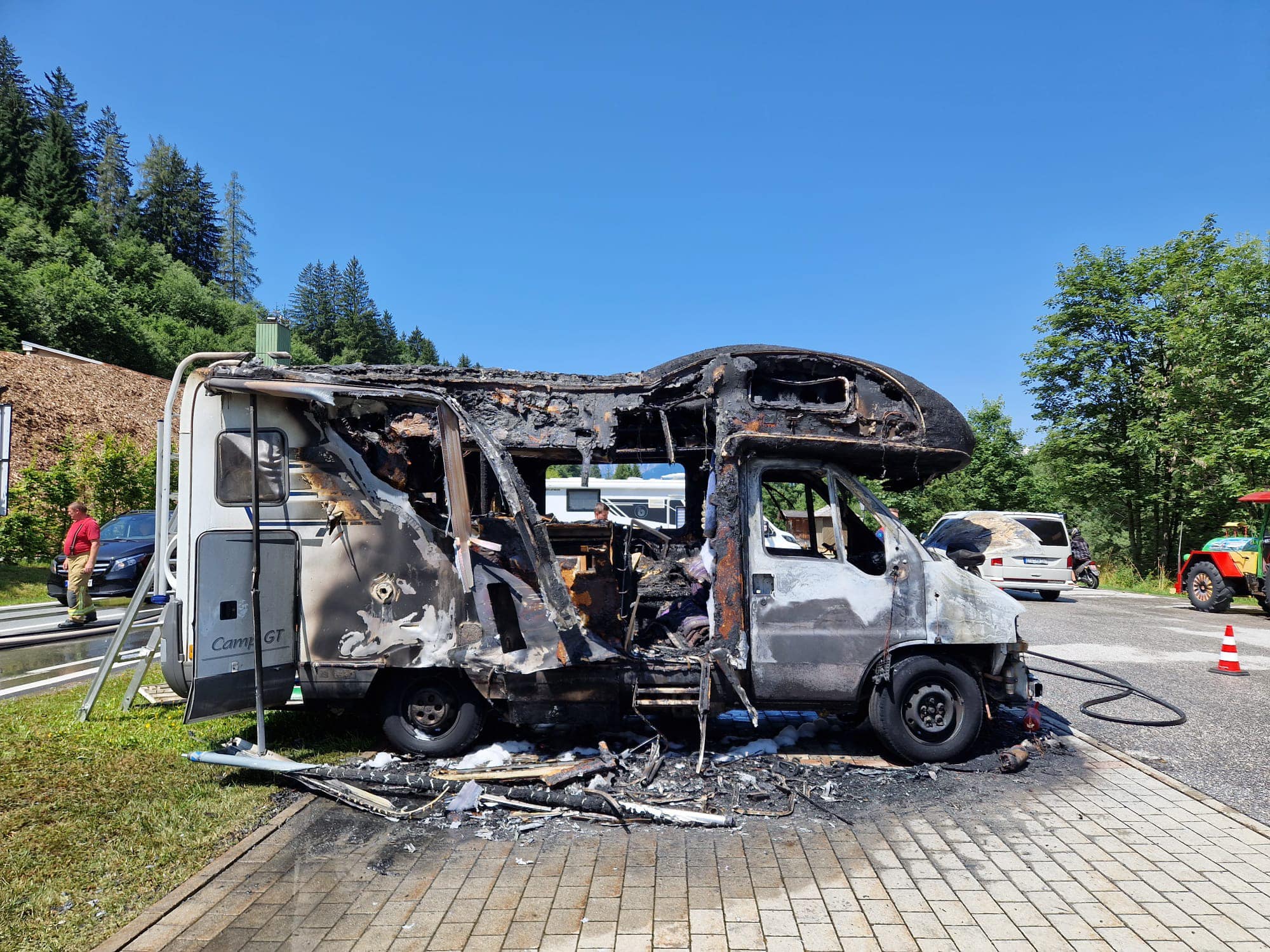 Am 23. Juli stand ein Wohnmobil am Parkplatz bei der Ortseinfahrt in Vollbrand. Mit Löschschaum und unter schwerem Atemschutz konnte der Brand bekämpft werden. Während den Löscharbeiten mussten unter anderem Gasflaschen in Sicherheit gebracht werden.