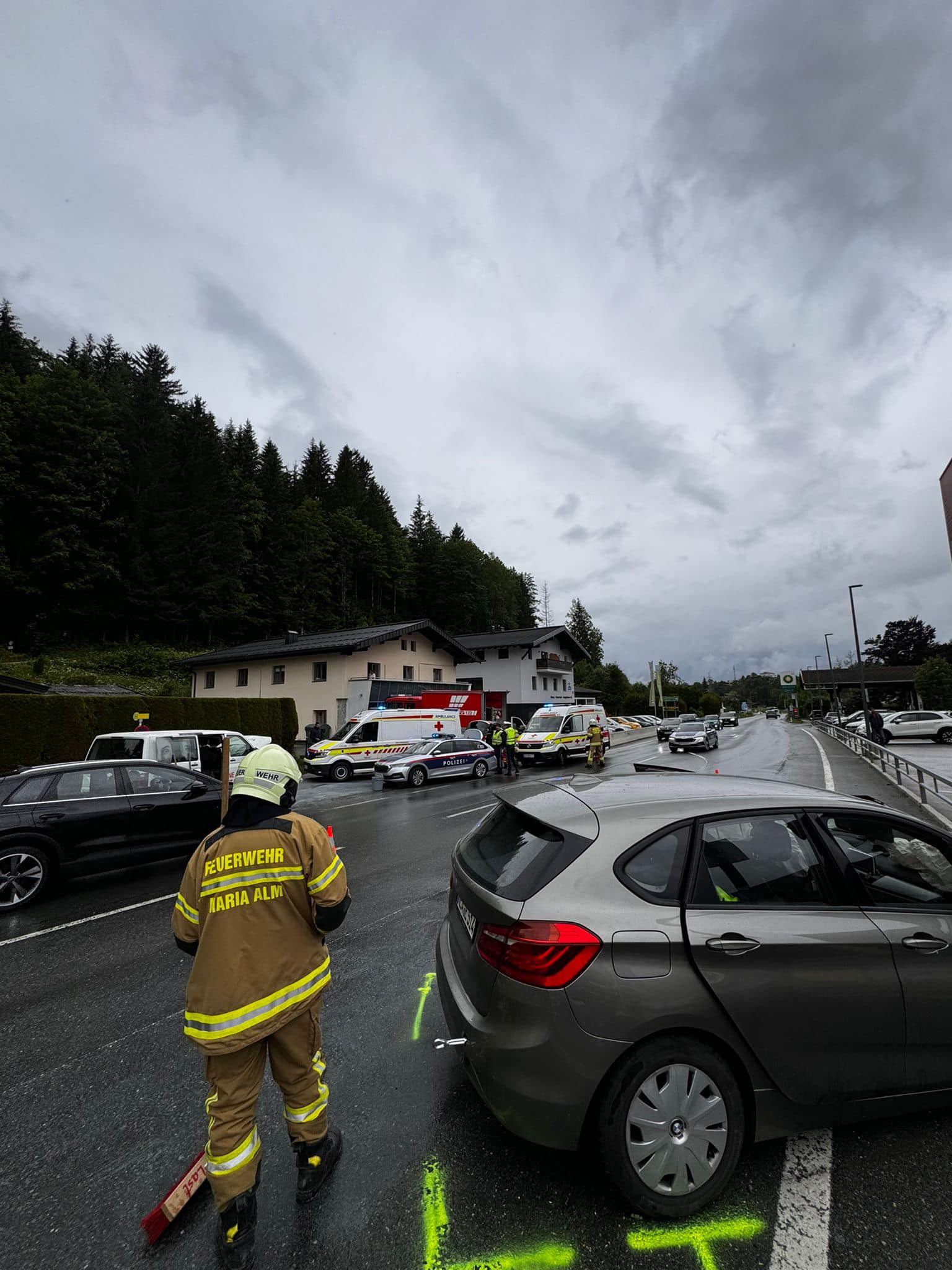 Zu einem Verkehrsunfall mit 5 verletzten Personen auf Höhe M-Preis wurde die Feuerwehr Maria Alm alarmiert.