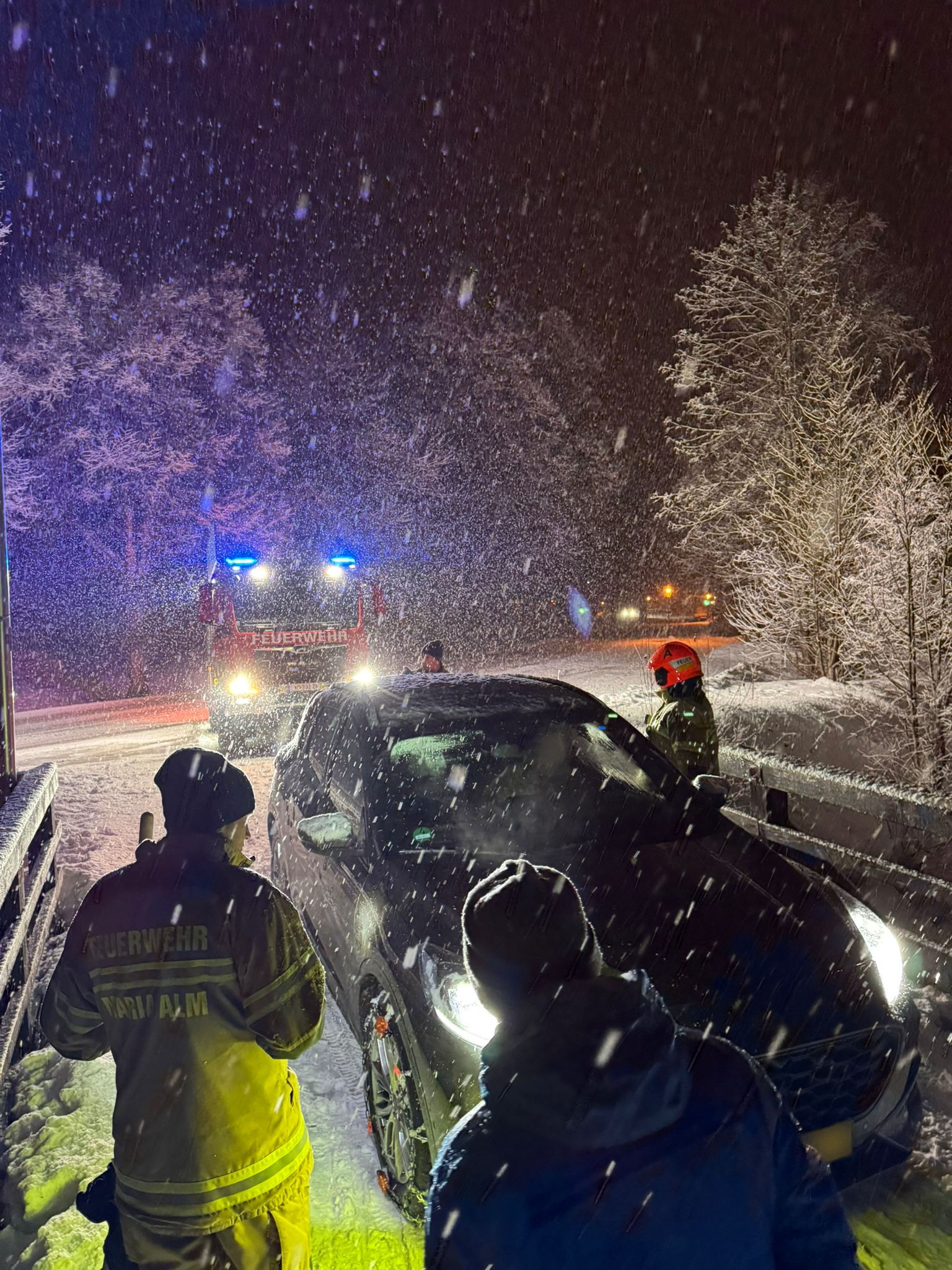 Nur wenige Minuten später wurden die Kameraden zu einer Fahrzeugbergung im Krallerwinkl alarmiert. Ein PKW war im Bereich Sommersteinweg auf die Langlaufloipe gefahren und nach ca. 20 Metern hängen geblieben. Mittels Seilwinde vom Rüstlöschfahrzeug wurde das Fahrzeug zurück auf die Straße gezogen.