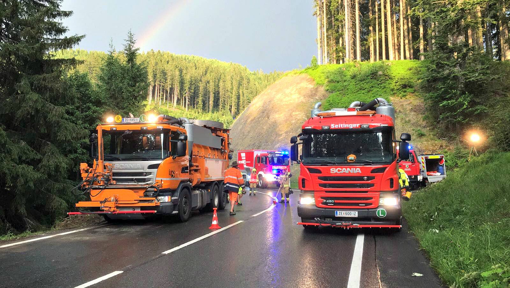 Nach Eintreffen der ersten Einsatzkräfte wurde festgestellt, dass ein PKW bei der Auffahrt zum Filzensattel zu brennen begonnen hatte. Da das Fahrzeug direkt am Waldrand abgestellt wurde und keine dauerhafte Wasserversorgung vorhanden war, wurden die Feuerwehr Dienten am Hochkönig und die Feuerwehr Saalfelden/ Löschzug Letting nachalarmiert. Ein kleiner Flurbrand an der gegenüberliegenden Seite der Straße konnte schnell mit HD-Rohren gelöscht werden. Der Fahrzeugbrand selbst konnte mithilfe des Schaumschnellangriffes aus dem Tanklöschfahrzeug abgelöscht werden. Beim Brand sind jedoch größere Mengen Betriebsmittel aus dem PKW ausgeflossen und in einen angrenzenden Kanal bzw. in die Natur geraten. Darum entschied sich der Einsatzleiter den Katastrophenreferenten der Bezirkshauptmannschaft Zell am See zu verständigen. Nach Absprache mit der Behörde musste eine Entsorgungsfirma sowie eine Transportfirma samt Bagger angefordert werden. Vonseiten der Feuerwehr wurde die Zufahrt für den Bagger in den Wald vorbereitet und weiterhin der Verkehr geregelt. Nachdem die kontaminierte Erde abtransportiert und alle Gerinne gesäubert waren konnte der Einsatz auch für die Feuerwehr beendet werden. Der Filzensattel war für die Dauer des Einsatzes komplett gesperrt oder nur einspurig befahrbar.