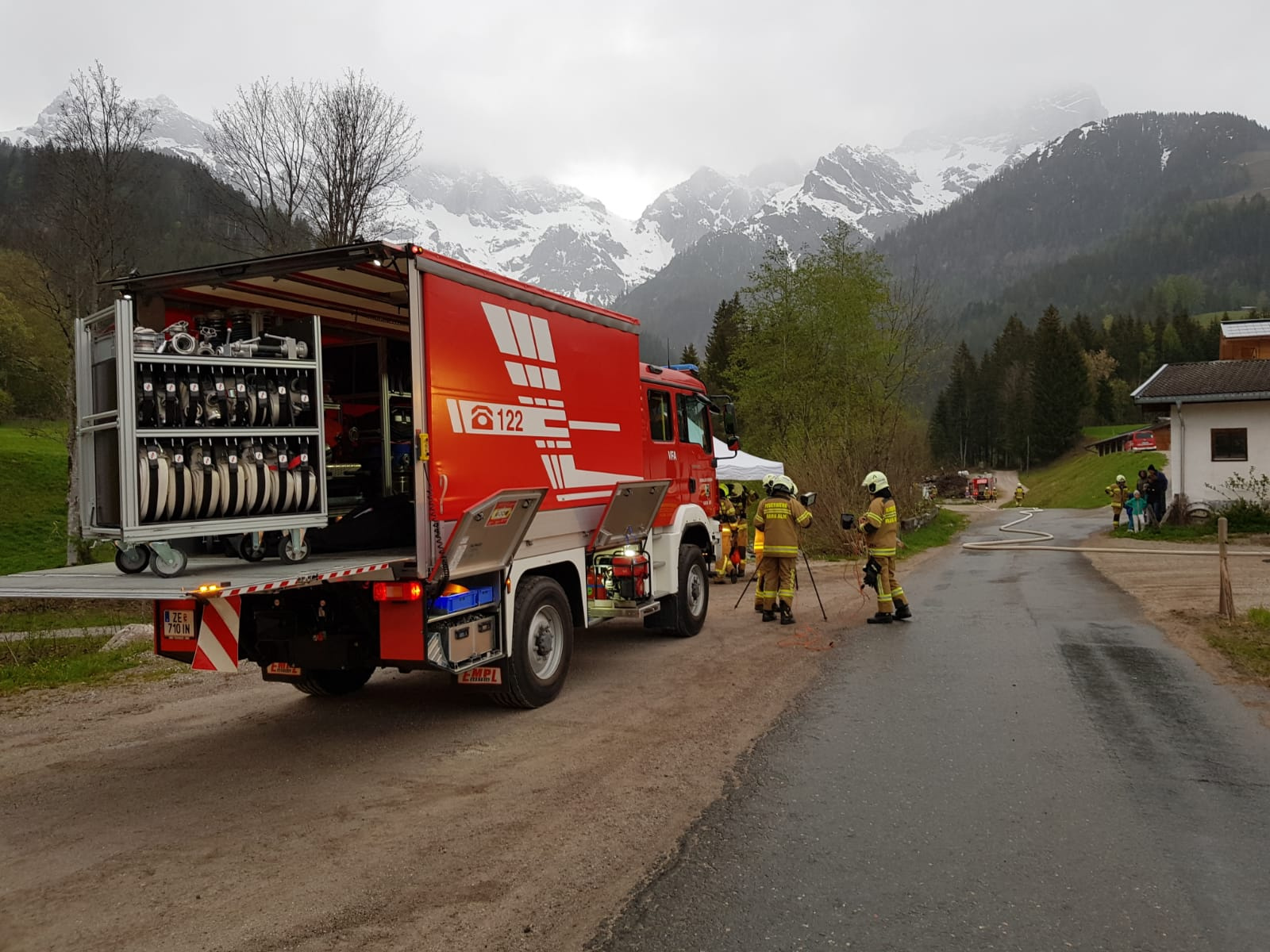 Am Mittwoch, den 8. Mai 2019 führte die Feuerwehr Maria Alm gemeinsam mit dem Löschzug Hinterthal eine Übung beim Rohrmoosbauer in Maria Alm durch. Übungsannahme war ein Brand im Silobereich des neuen Stallgebäudes mit vermissten Personen. Durch mehrere ATS-Trupps wurden die vermissten Personen über Leitern gerettet, der Brand bekämpft und das Gebäude belüftet. Gleichzeitig wurden am Krallerbach eine Saugstelle errichtet und Außenangriffe mittels C-Rohren durchgeführt.