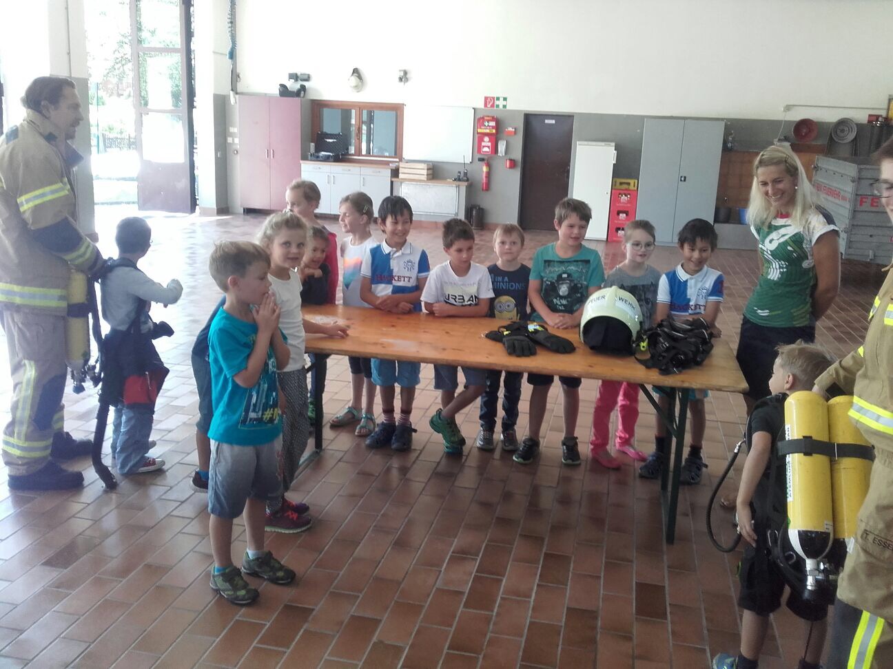 Danach durften die Kinder sogar selber Hand anlegen und verschiedenste Übungen an mehreren Stationen durchführen. So wurden zum Beispiel der Wasserwerfer am Dach des Tanklöschfahrzeuges ausprobiert, das Hydraulische Rettungsgerät getestet, Hebe- und Dichtkissen vorgeführt und Atemschutzgeräte anprobiert.