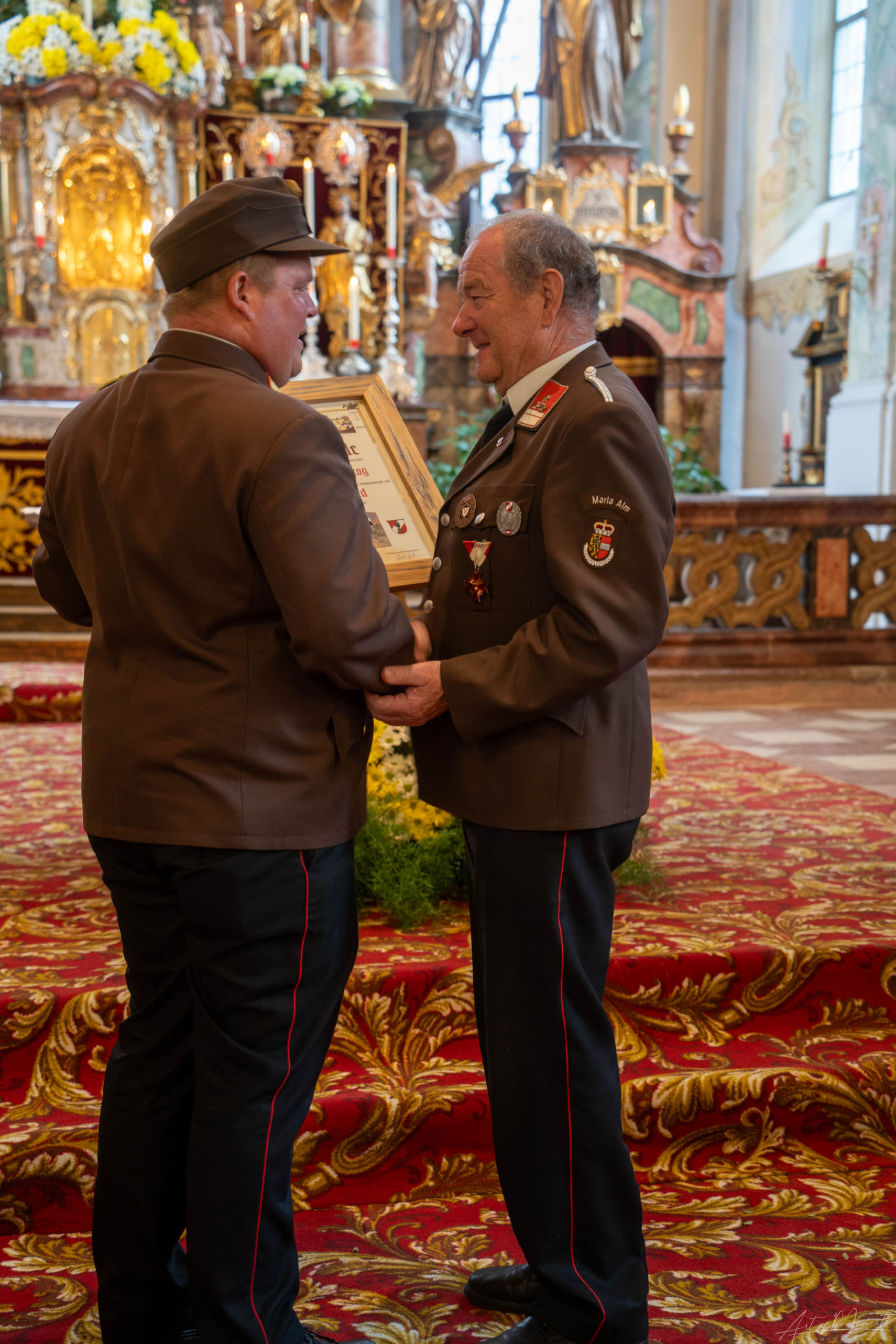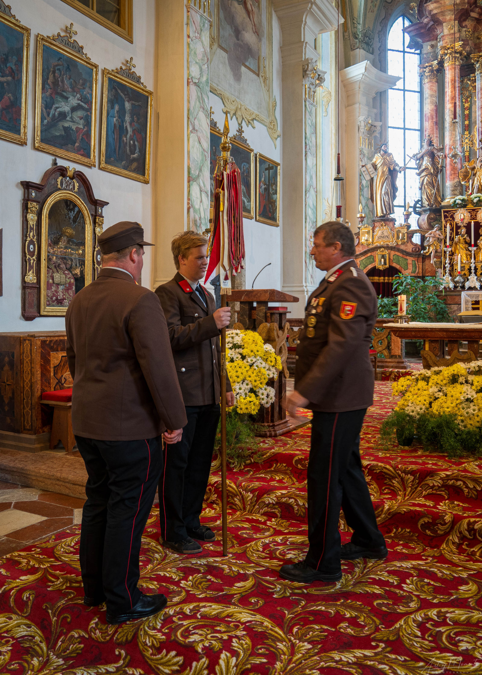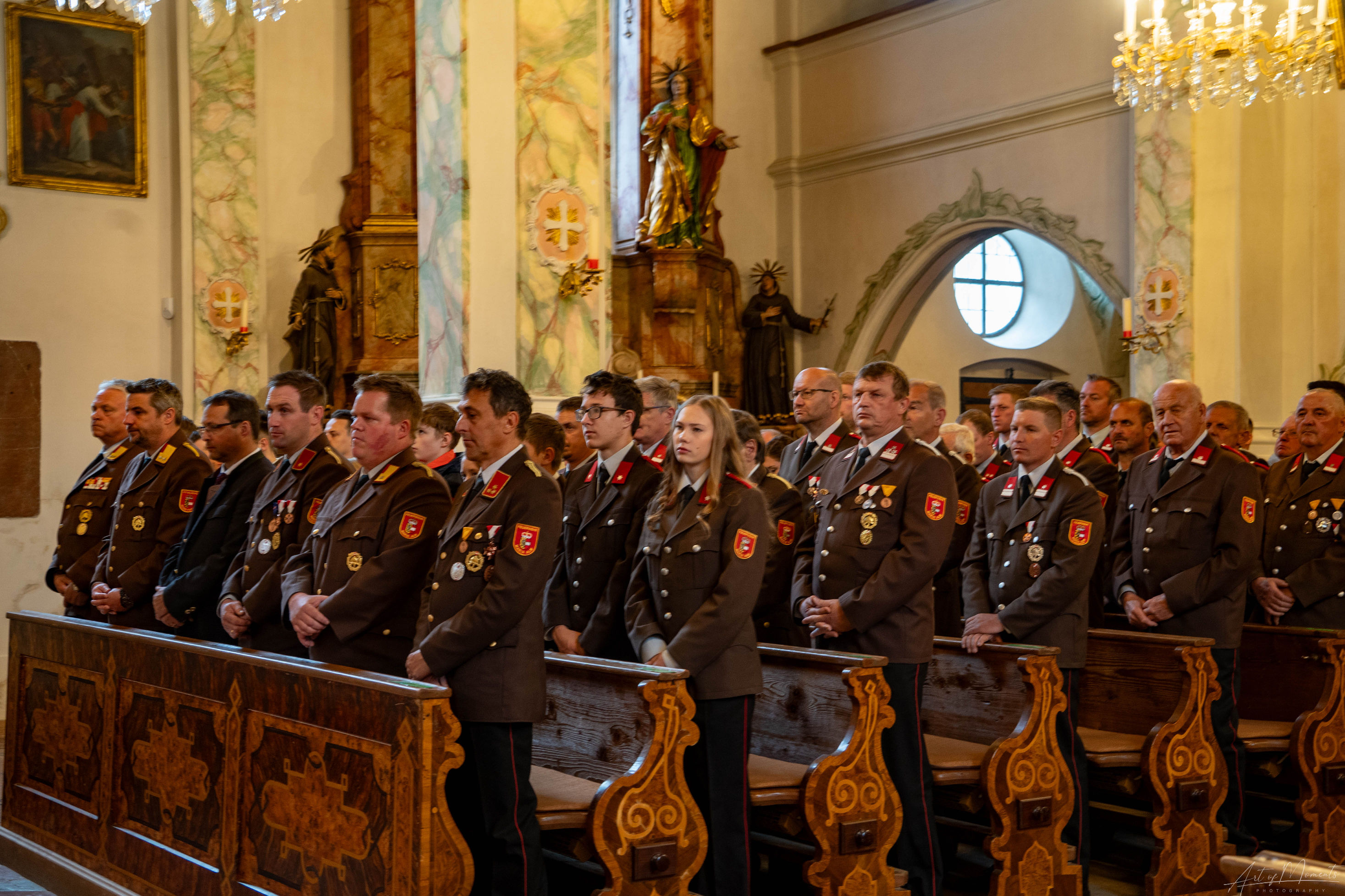 Anfang Mai, zum Gedenktag unseres Schutzpatrons dem Heiligen Florian, durften wir die diesjährige Florianifeier abhalten. Als Auftakt marschierten die Kameraden in Begleitung der Musikkapelle in die Pfarrkirche ein, um am Gottesdienst mit unserem Pfarrer Franz Auer teilzunehmen. Aufgrund der schlechten Wetterprognose wurden im Anschluss auch die Ehrungen und Ansprachen in der Kirche abgehalten.