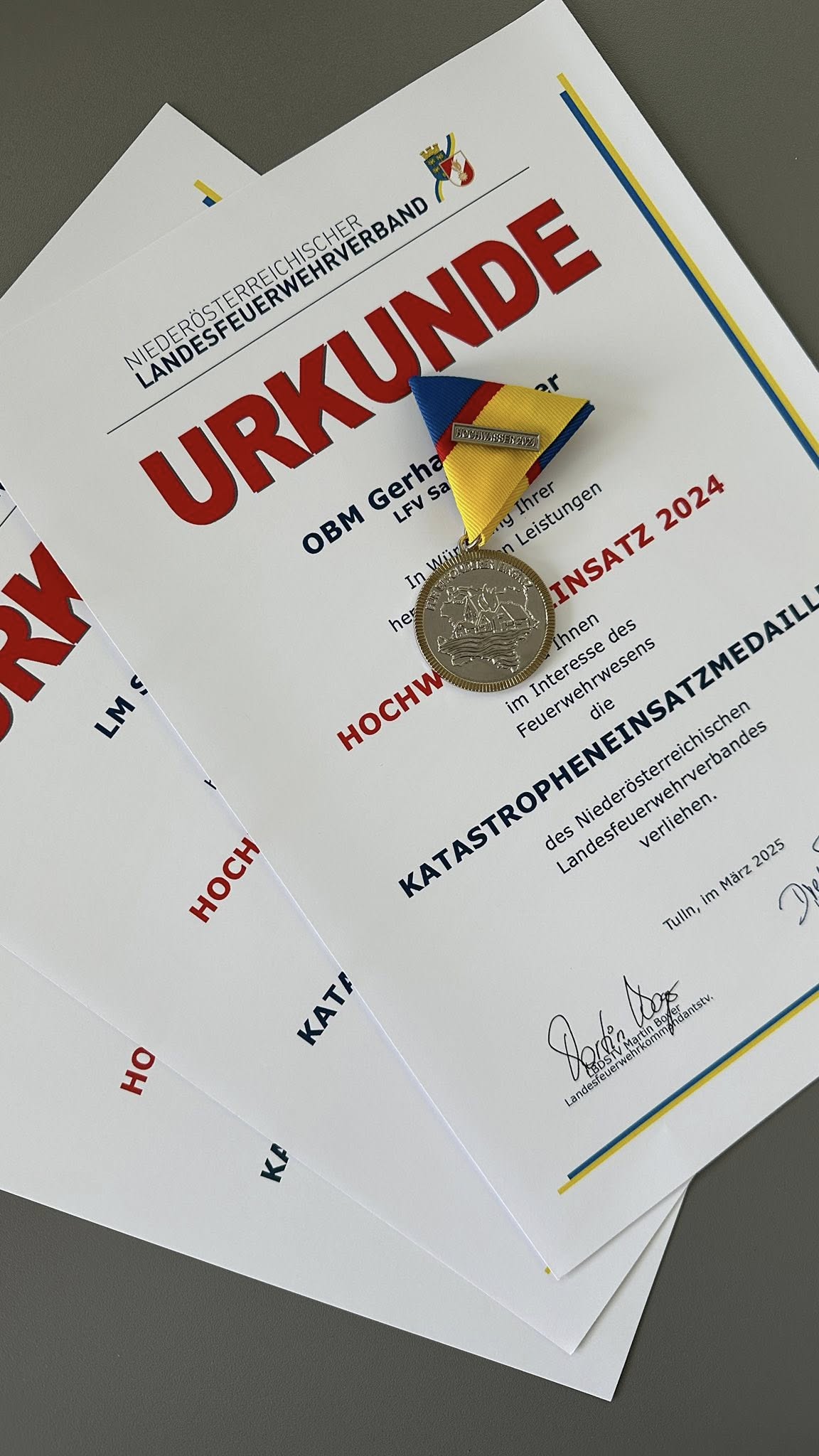 Am 4. Juli wurden bei einer feierlichen Übergabe in der Landesfeuerwehrschule die Katastrophenmedaillen für den Hochwassereinsatz in Niederösterreich übergeben.