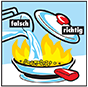 Bei Öfen und Herden: Keine brennbaren Gegenstände im Umkreis von 50 cm. Keine Tücher oder Bekleidung über die Herdfläche hängen.