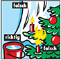 Kerzen richtig anbringen, nicht unbeaufsichtigt brennen lassen. Auf „trockenen“ Bäumen dürfen Kerzen nicht mehr entzündet werden. Immer Löschmöglichkeit bereithalten.