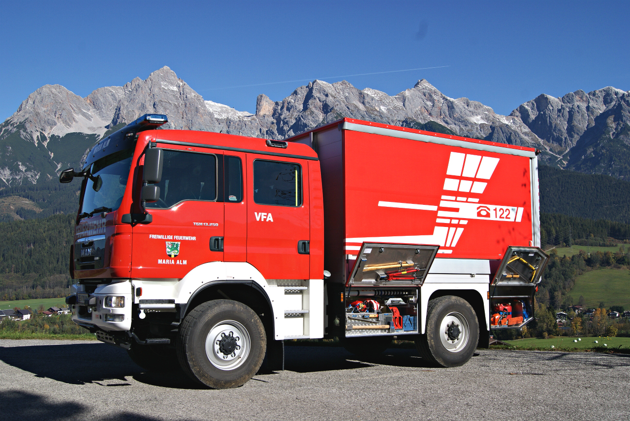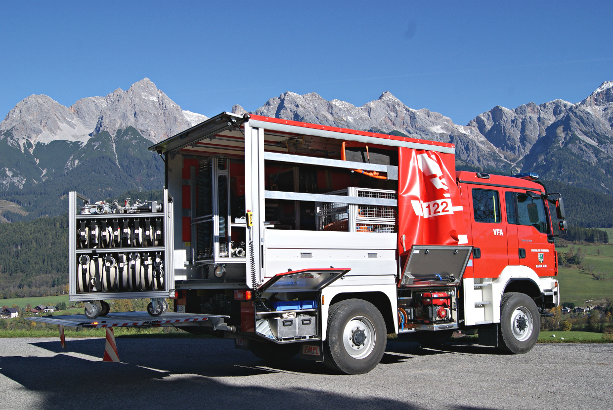 - Ausrüstung: Stromgenerator 3 kVA, Lichtfluter mit Stativ, Pumpe BMW Fox II, Personentrage (flugtauglich), Mehrzweckleiter, Motorkettensäge, Werkzeugkasten, Handfeuerlöscher, Tauchpumpe, Ladebordwand Palfinger 1500kg,verschiedene Rollcontainer für den Materialtransport, Pflichtausstattung laut den Richtlinien des Salzburger Landesfeuerwehrverbandes