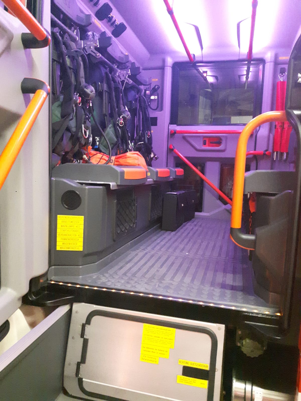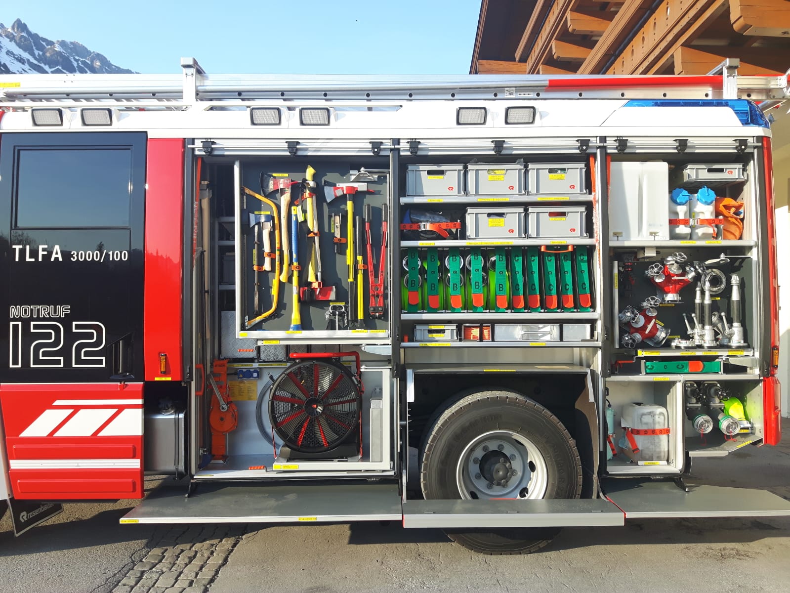 - Ausrüstung: Heckeinbaupumpe NH 35 mit 3500l/min, Schaummitteltank 100l FIXMIX, Wasserwerfer RM 24, Hebekissen, Personentrage flugtauglich, Greifzug 3t, Stromgenerator 14 KVA, Lichtmast 4x LED, Überdrucklüfter, Tauchpumpe, Atemschutzgeräte 3x300 bar, 4-teilige Steckleiter, 3-teilige Schiebeleiter